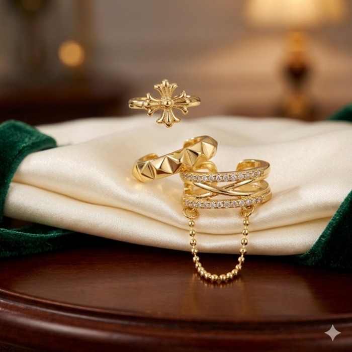 - Tasarım: Set içerisinde; modern bir dokuya sahip geniş earcuff, klasik formda orta boy bir halka ve minimalist bir ince kıkırdak küpesi yer almaktadır.